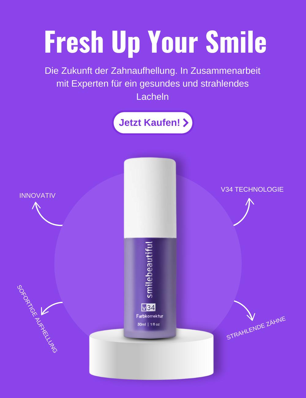 Wenn du Violett auf deine ZĂ€hne auftrĂ€gst, werden die gelben Untertöne neutralisiert und aufgehoben, sodass ein deutlich hellerer WeiĂton zum Vorschein kommt. Ziemlich cool, oder?